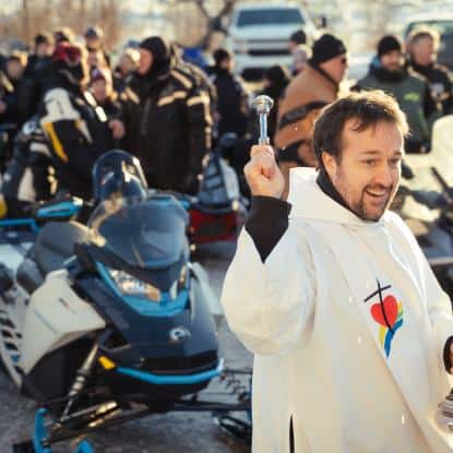 «Cette année, prends pas de chance, laisse pas ton skidoo sans protection divine!» Plus d’une centaine de motoneigistes ont répondu à l’appel le 10 janvier dernier. Ils se sont donné rendez-vous sur le parvis de l’église du village de Saint-Laurent, au sud de l’île d’Orléans, pour la bénédiction de leur véhicule. Simple clin d’œil humoristique ou volonté réelle de renouer avec le sacré? Le Verbe est allé voir.