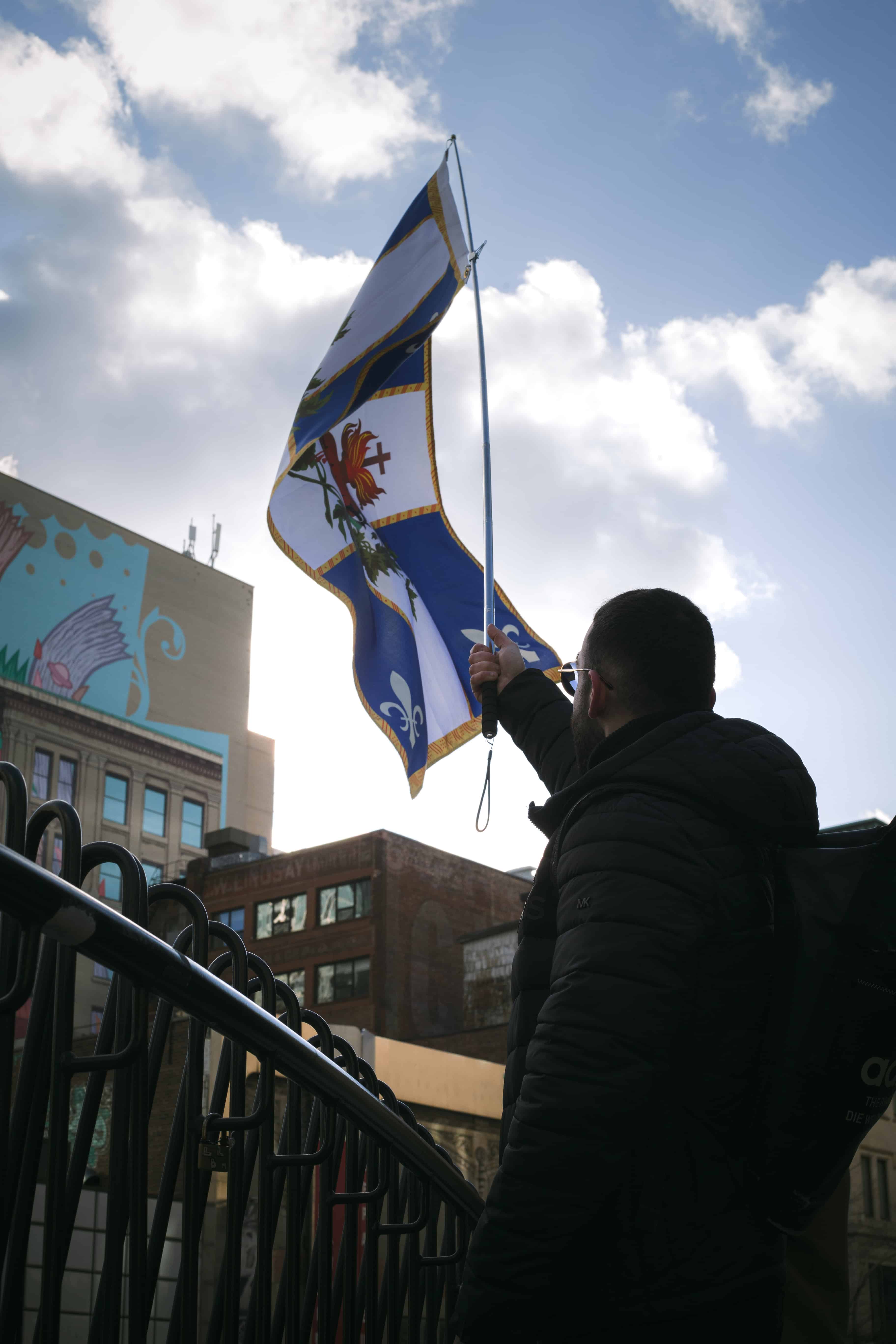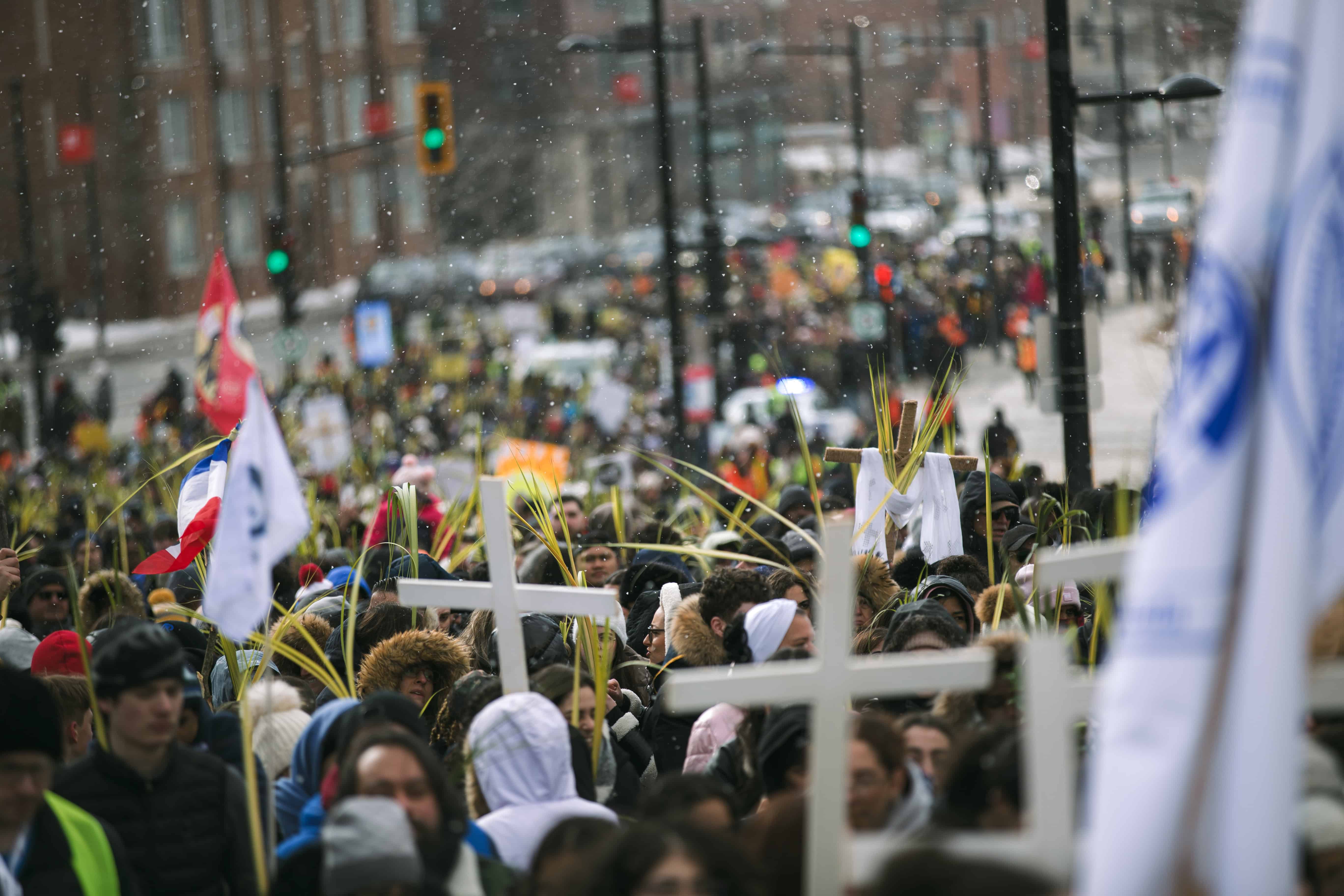 Rameaux, croix et drapeaux dans les rues de Montréal